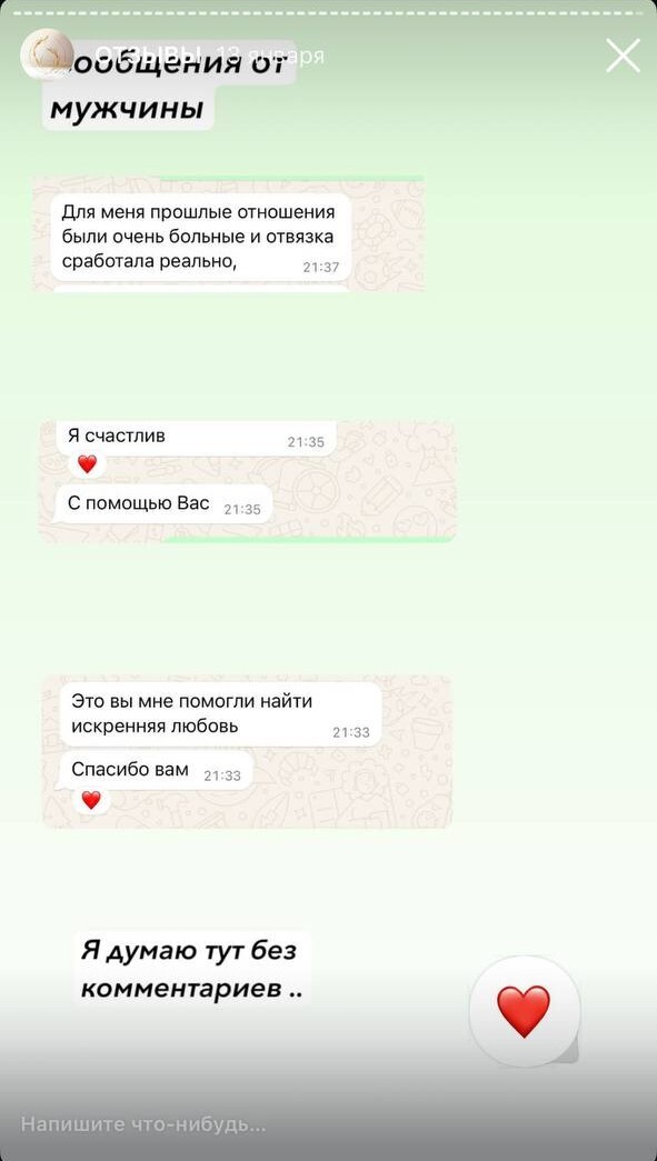 Привет. Хочу поблагодарить тебя за работу процесс отвязки. Это была просто навязчивая идея по отношению к определенному человеку. Очень сложно было выкинуть эти мысли из головы. После сеанса понемногу стали проясняться в голове определенные вещи…