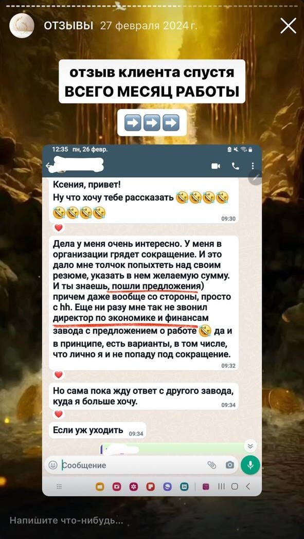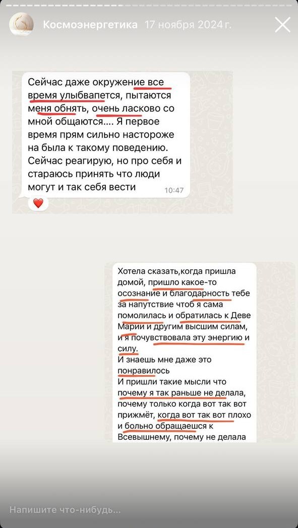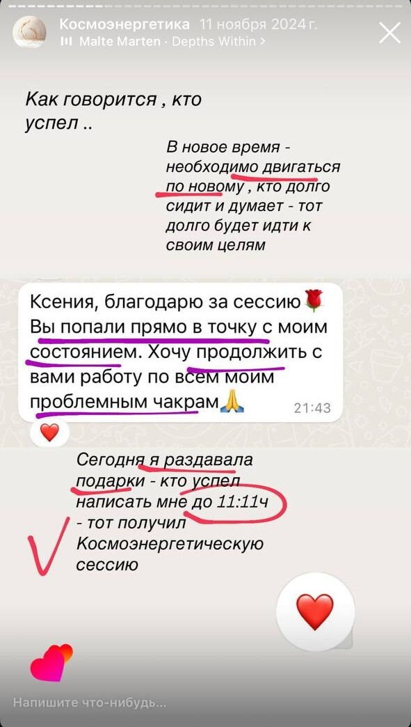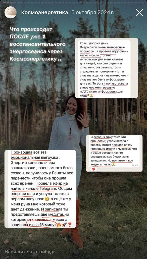 Дорогая моя Ксения! Как только тебя увидела, в потоке пришла картинка, как взаимодействуем. Недавно я искала человека, который посмотрит мою ауру, есть ли пробои, сущности. Понимаю, что это случай не одного сеанса, но я уже чувствую изменения! Самое важный инсайт: меня словно....